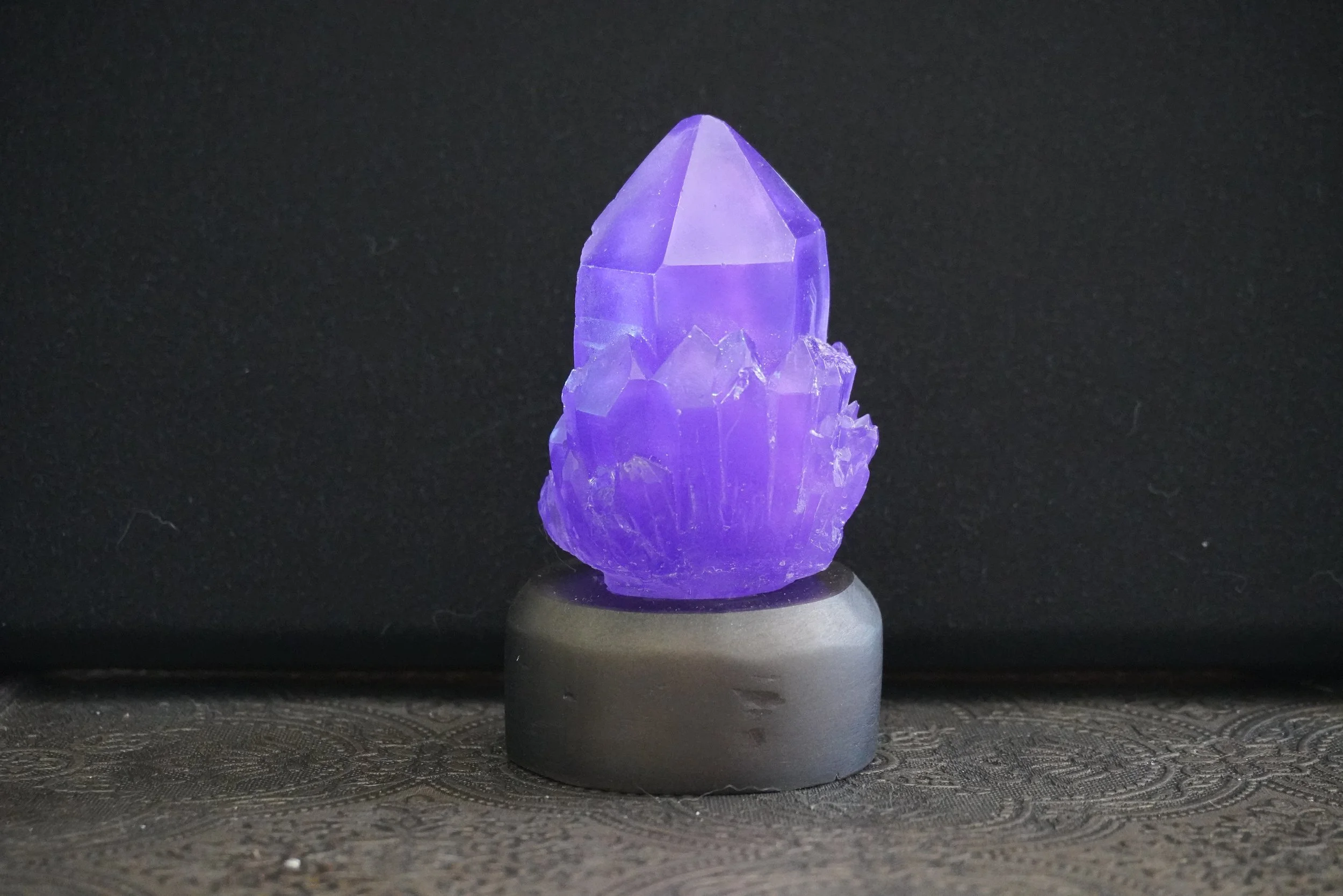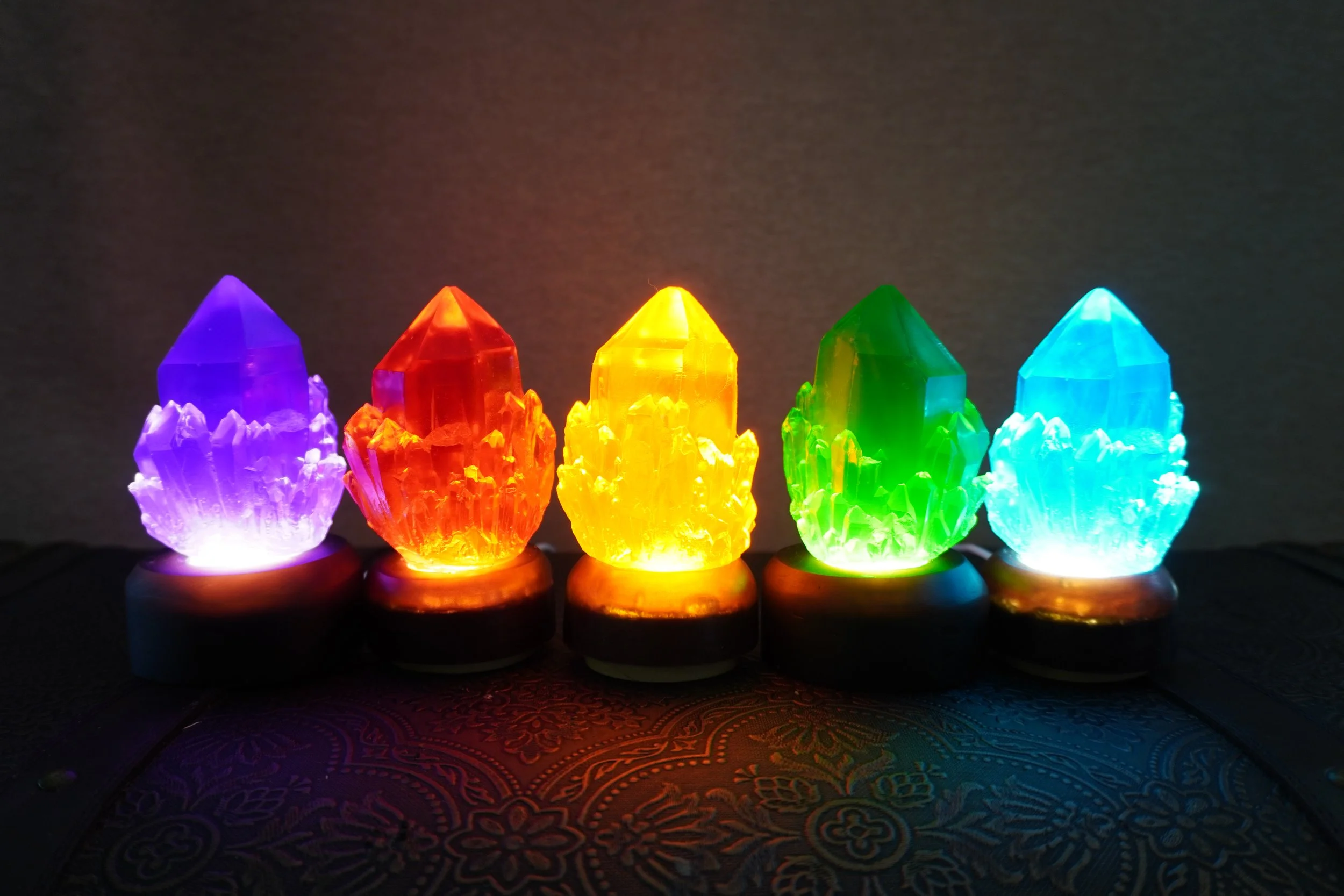 The crystals used in our lamps are the exact same as in our staffs. The lamps are also USB powered, using on 3 Watts. They use high lumen LEDs with a long lifespan.